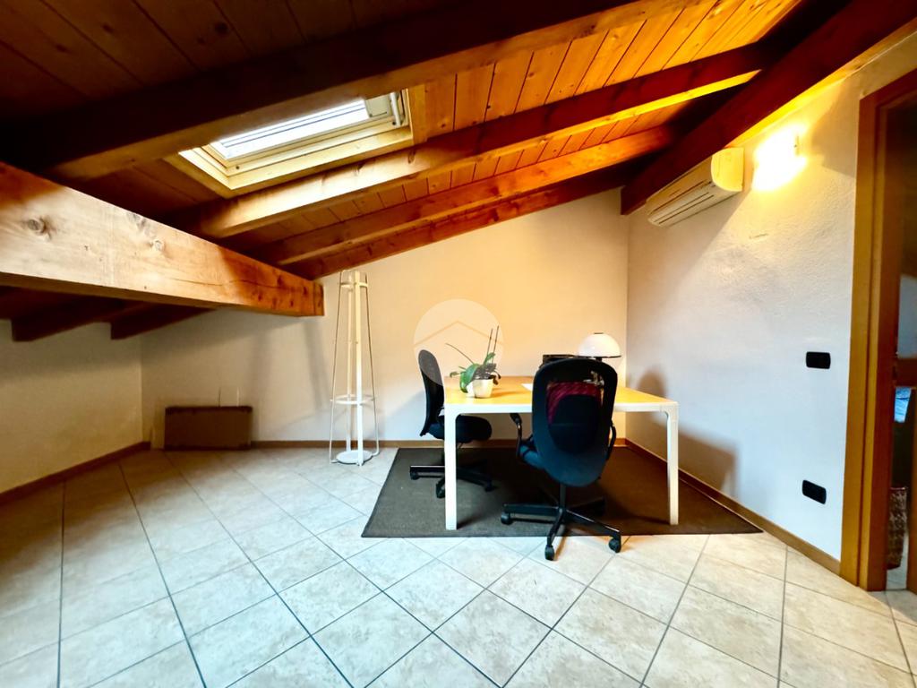 Al piano secondo, locale mansardato con due ampie stanze e servizio.
