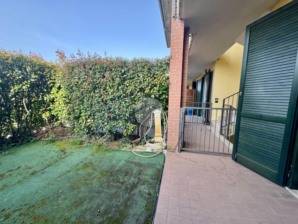 PONTI SUL MINCIO Loc. Dolci - In residence con piscina di sole dodici unità abitative costruito negli anni 2000. Proponiamo in vendita appartamento bilocale situato al piano terra, ideale sia come casa vacanze che come investimento per locazioni brevi o residenziali. L'immobile si distingue per l'ingresso indipendente che garantisce massima privacy, accessibile tramite il primo giardino privato. All'interno, la zona giorno è composta da un soggiorno open space con angolo cottura ottimamente distribuito. La zona notte comprende una camera da letto matrimoniale con accesso diretto a un secondo giardino privato sul retro, e un bagno finestrato. Completano la proprietà una cantina e un'autorimessa situate al piano interrato.
